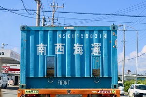 買い物に行く途中で面白いコンテナを積んだ車に遭遇。