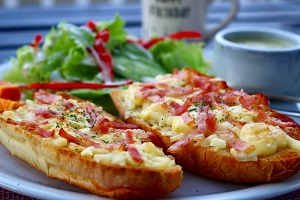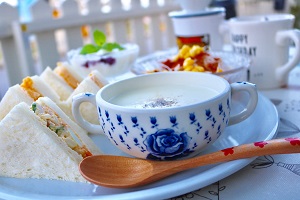 それでは、ポークランチョンミートの「海と空を眺めるダイニング HELL’S KITCHEN(ヘルズキッチン)」のお食事のご案内です。