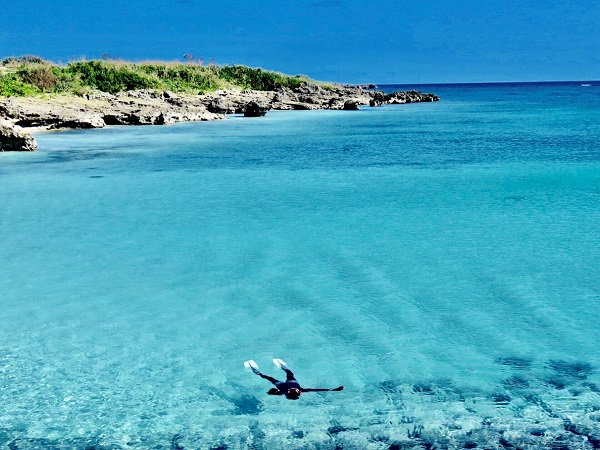 海から上がっておにぎりを食べながら海を眺める。すると、一人で海に入る若い男の子。「あいつ、大丈夫か?」夫の言葉に同調した。フィンを付けているのだがシュノーケル初心者なのか、なっちゃいない。足を海面から出して思い切りバタバタさせている。水しぶきがすごい。私たちは彼を「一人大騒ぎ君」と名付けて暫く様子を見ることにした。だって、潮に流されっぱなしだったから・・。
