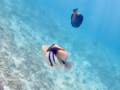人が少なくなっていた。そうだろうそうだろう。それにしても、何年か前に見た時よりも魚の数が増えているような・・・。ところどころの珊瑚の周りを泳ぎ倒す。
