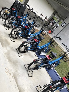 この空港へ入るのは開港前のレセプションの時以来。当然のごとく進化をしていた。まず目に飛び込んできた電動自転車の列。これはいいアイディアだと思う。空港で借りて空港へ返せばいいので運転免許がない人は助かるだろう。
