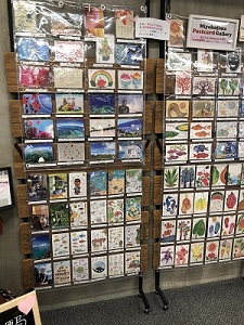 かたわらには絵葉書も売られており、そのどれもが欲しくなるセンスのいいデザイン。宮古ふつ(方言)や宮古の植物など、宮古に関連したものばかりで、様々なアーティストさんが手掛けたもの。お土産にもいいだろう。私の宿にも数枚飾っている。