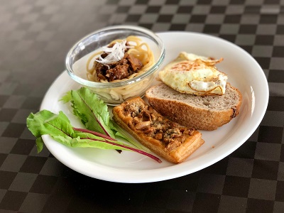 料理担当の夫は、ここぞとばかりに料理の「試作品」を日々作り続けています。レパートリーも今年一年でかなり増えたと思います。例えば、宿泊者様の朝食。