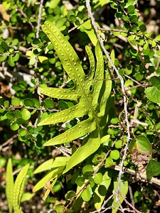 あらら。手のひらを一筆書きで書いたような葉っぱ。ブツブツは賛否両論だろう。