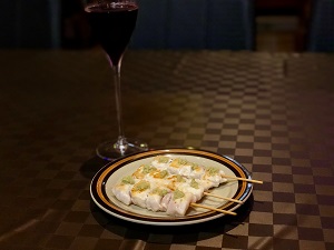 私の夜のおつまみは、東京での私達のお店を思い出して「ささみさび焼き」を作ってもらいました。大山鶏を取り寄せて。
