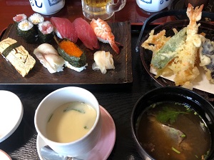 たまには外食もいいものです。ここはお座敷が個室になっているのでおばあでも安心。窓もちゃんと開いていましたし・・。しかもこんなに沢山ついていて1000円?だったかな?(多分それくらい)やっぱり地元の人がやっているお店は料金が良心的です。外食が大好きな秀ちゃんも大満足のようでした。