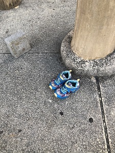 さて、本題に戻ろう。朝日を拝んだらあとはひたすら歩く。植物などの鑑賞も楽しいが、落とし物が減らないのでどうしても目に付く。先日落ちていた子供靴の場所が変わっていた。この子の母親はきっとこの靴が無くなったことにも気が付いていないのだろう。いつまでこれがここに存在するのか、見守ることにしようか。
