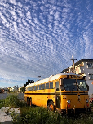 遠い国からはるばるやってきたスクールバスがかわいい。