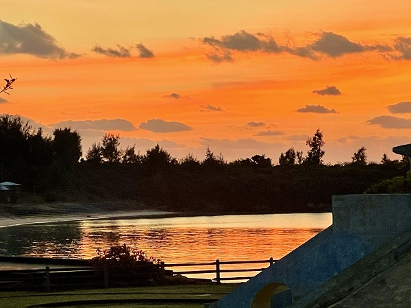 お隣はパイナガマビーチ。湾になっていて安全なので、海の遊びはなんでもできます。早朝は地元のお年寄りが健康のために泳いでいます。夕方は子供たちの時間。桟橋から海へ飛び込んで遊びます。それが一年中続きます。なんていい所なんだろう・・・と、毎日思っています。この土地と巡り合えたことで、私は一生分の「ラッキー」を使い果たしてしまったと思っています。
