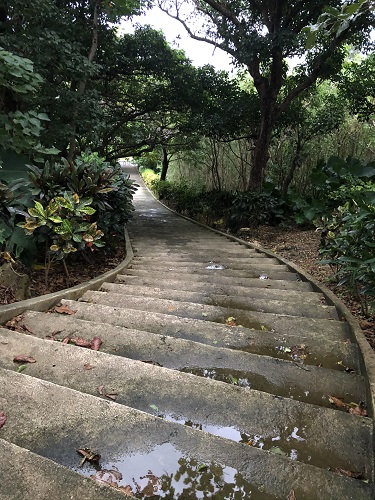 階段を下りたら遊歩道。でも朝に階段を利用したこともない。ちょっとだけ怖がりだから。