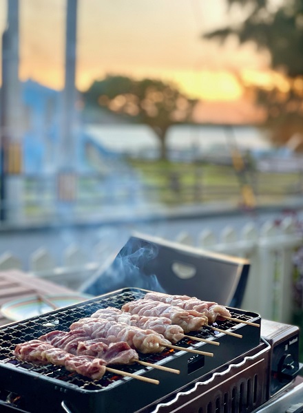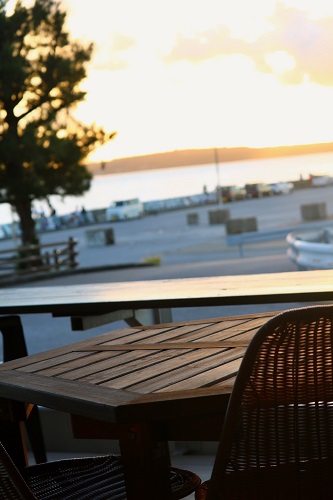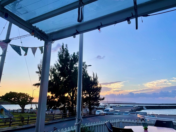 テラス席にて、パノラマの海と空を眺めながらどうぞお召し上がりください。