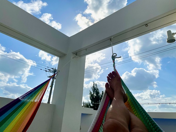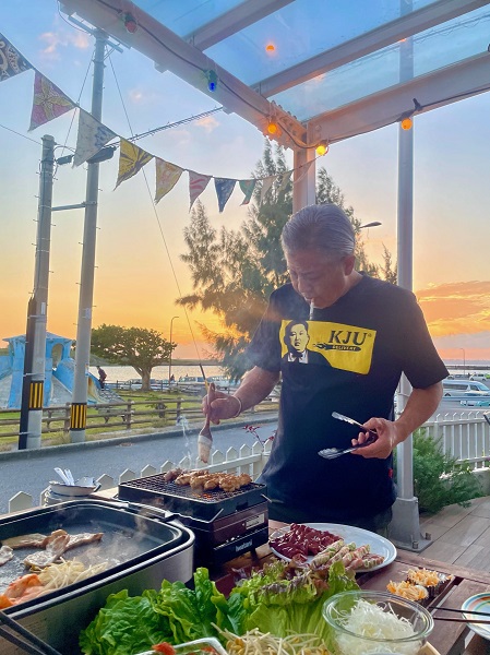 そして、いつの日かここで「海の見える美容室」を娘にやって欲しいと淡い夢を持っている私達は、予行練習をしたくなった。朝の気持ちがいいテラスで実行。