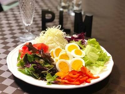 それでは、PLMのダイニングの料理のご紹介です。ご宿泊者はお一人様2200円。料理の種類によって2~3品。