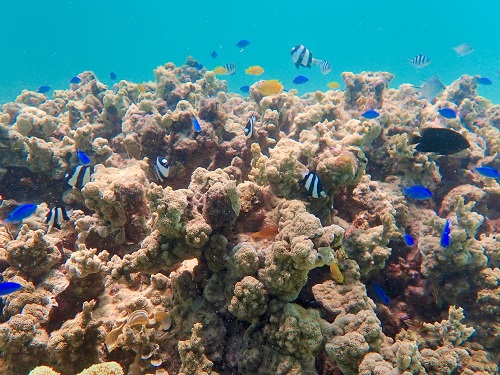 ここには珊瑚や魚がいないと思っている人が多いようですが、実はいくつかのポイントがあり、美しい海の中の景色を見ることができます。クマノミも沢山生息していますし、ウミガメも住んでいます。