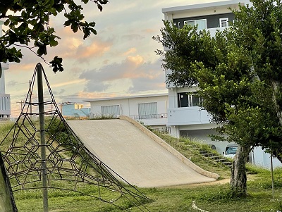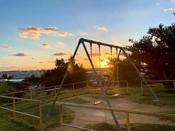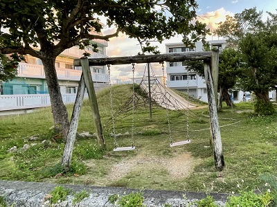この公園は地元の子供達(幼児からなんと高校生まで!!)と、おじぃ達に大人気!!そして公園を横切るとビーチです。公園の端っこにある階段を降りるとすぐに海に入れます。私はこの7年間で相当このビーチで泳いだ(シュノーケル)ので「静佳ビーチ」と勝手に呼んでいます。